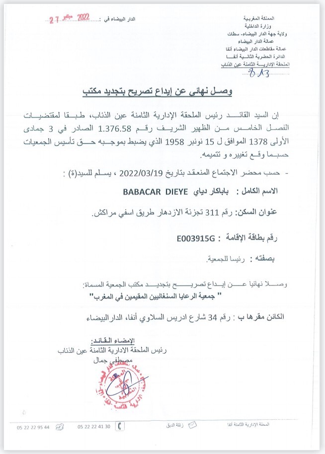 Convention d'établissement des Sénégalais au Maroc