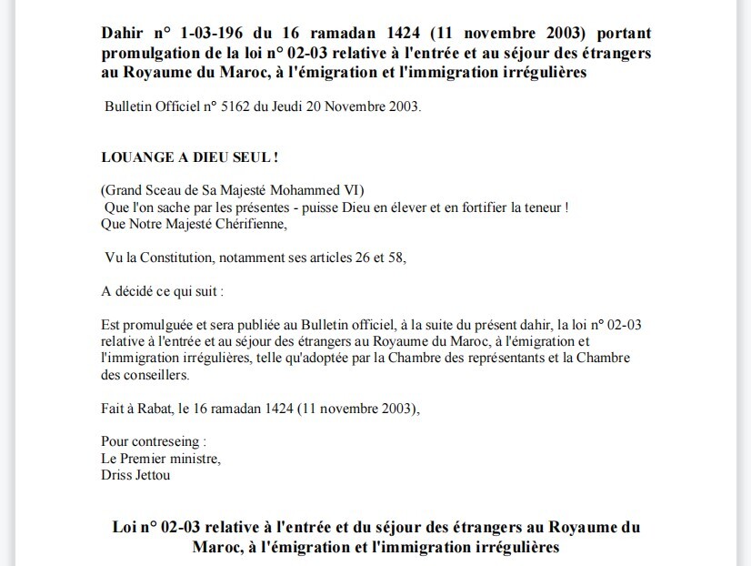 Loi 02-03 séjour des étrangers au Maroc